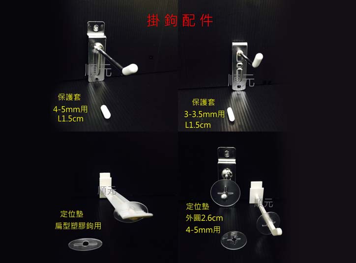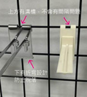 A: 針對不同的背板系統,我們有對應的洞洞板掛鉤、槽板掛鉤、網片掛鉤 (網用鉤)以及扁管掛鉤。若您不確定孔徑或規格,歡迎聯繫順元,我們將推薦最適合您的陳列掛鉤。
