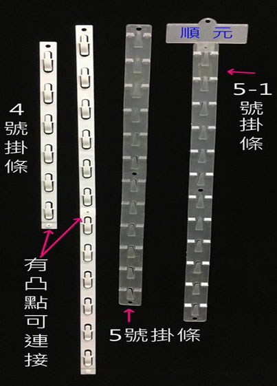 4號吊夾兩用掛條W2L37㎝ 6鉤厚2.5㎜ 5號塑膠掛條W2.8L57.5㎝ 12鉤厚1.7㎜