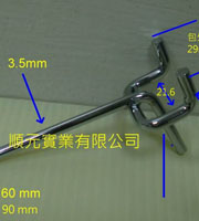 ● 槽板壓克力雙鉤 5.9mm線 L9cm 載重600g