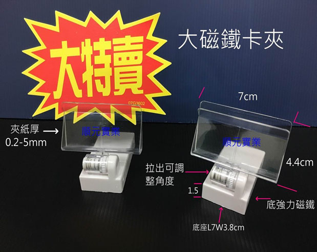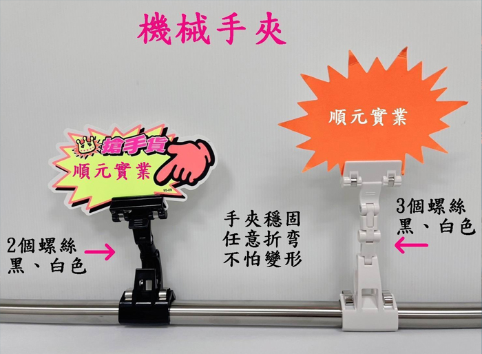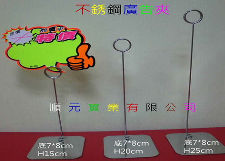 順元實業提供多樣化的菜單夾與廣告夾,可搭配各類掛鉤與展架使用,滿足店鋪POP海報陳列需求。產品包含不鏽鋼標價夾、老鷹夾及強力磁鐵夾等。
